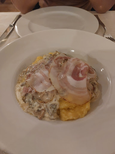 Read moreSeconda volta a tavola in questo grazioso locale, previa prenotazione per le ore 21.00. Entriamo poco dopo e con fare un po’ insipido veniamo accompagnati al tavolo x 5 prenotato. Il menù è ben fornito, cucina tradizionale carne e pesce, oltre all ottima scrocchiarella che consiglio di provare. Dalla lettura del menu all ordinazione passano circa 10 minuti, altri venti abbondanti x vedersi arrivare i piatti, di buona qualità va detto, e iniziamo a mangiare alle 21.45 circa. Partendo col presupposto che la cena domenicale con gli amici è comunque prospettiva e oggetto di pace e tranquillità, ci troviamo dopo una decina di minuti col cameriere che di tanto in tanto viene a controllare e portare via anche un piatto vuoto alla volta. Ci sentiamo marcati come in una mensa aziendale, e la cosa inizia a creare punti interrogativi e a me parecchio disagio. Il cameriere torna ripetutamente ogni 5 minuti fino al punto in cui lo invito a lasciarci in tranquillità. Alle 22.15 arriva un altro cameriere che con fare poco ortodosso e un tovagliolo sulla spalla spegne il climatizzatore e ci chiede se vogliamo il caffè perché devono pulire la macchina, alle 22.15??? della serie andatevene fuori dai cogl. Bevuto un caffè molto approssimativo varchiamo L uscita alle 22.30. Morale: Mai più Sconsigliato a chi ama cenare senza essere disturbato da camerieri e relativo servizio frettolosi...