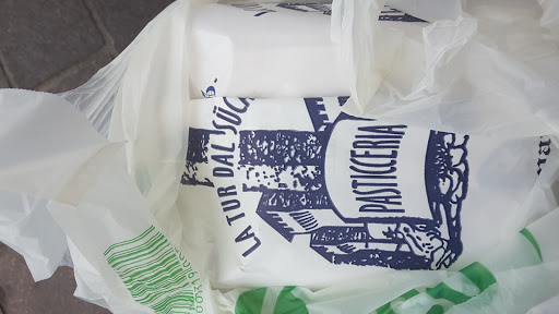 Read moreGirando a far visita della bellissima Mantova, non ci siamo potuti dall'esimerci dal visitare la Pasticceria La Tur dal Sucar. A dire il vero siamo stati attratti dal profumino più che dalla centralità del posto. Poi una volta entrati ci siamo imbattuti credo nella proprietaria. Molto gentile e paziente (era giornata di mercato per cui molto frenetica), che a noi turisti occasionali ci ha spiegato le prelibatezze. Abbiamo preso la "Patata" una sorta di mega bignè interamente imbottito di crema di zabaione aromatizzato al vino bianco e ricoperto da granella credo di amaretto. Un consiglio...dotatevi di fazzolettini di carta, non risparmiano sul ripieno. Io ho preso il trancio di Elvezia e vi assicuro che non ne rimarrete delusi. Peccato solo che non siamo potuti tornare prima di ripartire per fare scorta. tappa...