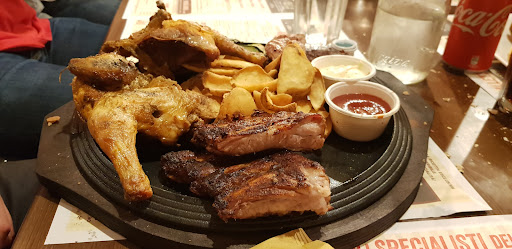 I tempi della prenotazione non vengono rispettati e bisogna attendere che si liberi il proprio tavolo. Ok che è sabato sera però aspettare oltre 20min può diventare frustrante per alcune persone/famiglie che si ammassano nella zona cassa. Il ristorante è organizzato abbastanza bene ma eviterei di avvicinare tanti tavoli vicino per poi rischiare di fare uno slalom per andare al bagno o rischiare di intralciare i camerieri. Il menù si presenta già sul tavolo in un'unica paginata e permette di avere un quadro complessivo delle scelte per decidere il piatto. Cortese il cameriere che ha ricontrollato le prenotazioni per non sbagliare ordini(tavolo di 10prs). Tempi di attesa nella media considerando che il locale era pieno. I prezzi sono giusti ma le quantità sono leggermente sotto dosate e poi la fetta di pane a caso per riempire lo stomaco? Da evitare. Costine nella norma, non sono abbastanza saporite e leggermente bruciate in alcune zone e poco tenere. Il gallo è molto "oleoso" e sinceramente mi aspettavo che fosse più buono. Non esagero se dico che prenderlo al supermercato farebbe poca differenza. I panini sono buoni, carne cotta al giusto ma il pane è leggermente dolce (forse sarebbe più adatto il tipo rustico). Nel complesso posso consigliare di andarci in gruppo e di puntare sui panini. Sicuramente può migliorare e non esiterò a ritornarci per...