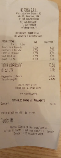 Venuta via da poco,dopo aver cenato nella pizzeria stessa. Eravamo in quattro. In sala eravamo in pochi clienti...e il servizio è stato a dir poco non soddisfacente (la dipendente era troppo impegnata nell' interagire con un tavolo di suoi conoscenti,che quasi si era scordata di verificare se dalla cucina fosse pronto il nostro ordine. Dopo aver notato il mio sguardo critico,ha provveduto nel effettuare il proprio dovere,uscendo dalla cucina con le dovute portate...quasi cinquanta minuti di attesa per tre pizze ed un primo... pazzesco). Durate il pagamento,due del mio gruppo volevano pagare la propria consumazione con il POS,ma non era fattibile per motivi burocratici personali,per cui ho provveduto nel saldare il conto complessivo. Purtroppo, però,la stessa dipendente menzionata poc'anzi,ha effettuato solamente uno scontrino per un totale di € 33,50 e non di €58,50 giustificando il fatto del precedente pagamento non andato a buon fine col servizio pos . Non ho voluto discutere, però esporre platealmente reputo sia doveroso, poiché certe situazioni comportamentali e burocratiche non dovrebbero succedere. Se l'immagine di una ristorazione mantiene questo spessore,mi spiace veramente dover ammettere che in questa pizzeria "non metterò più piede" (e intanto siamo in...