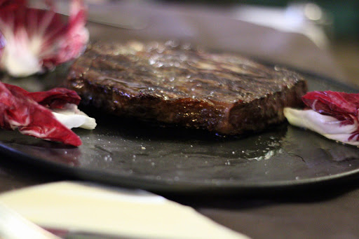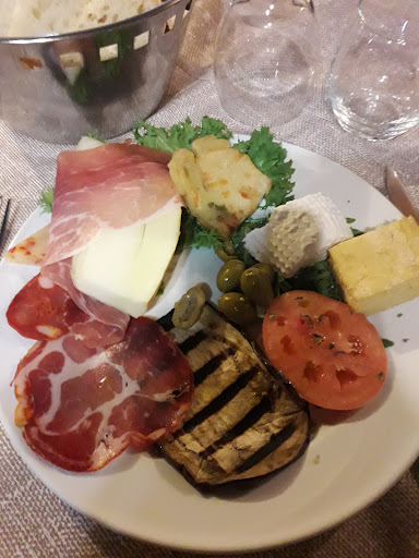 Read moreBella giornata di sole. Dopo una settimana di lavoro in città, abbiamo scelto questa location perché fornita di spazio esterno, ma purtroppo ci hanno detto che non era possibile. Al solito, è il cliente che deve mettersi al servizio, sottostando alle esigenze del gestore e non viceversa. Ci hanno quindi condotto al primo piano, varie sale, di cui una sola spaziosa e alquanto luminosa, ma, tuttavia ci hanno proposto un tavolo in luogo buio e angusto, a ridosso delle scale ( x ridurre al massimo i passi del cameriere?) nonostante,al momento, fossimo gli unici avventori. Stiamo x rinunciare e andare via ma poi ci hanno offerto un tavolo accanto ad un piccolo balcone dal quale si vede un po' di verde ed entrava un po' di luce. Siamo restati. Una giovane signora ha recitato a memoria il menù, ovvero, niente lista cartacea o on line con la doverosa possibilità controllo prezzi. Abbiamo preso 2 antipasti caldo/freddo, mediocri, due entrecote al sangue alte sui 2,50 cm, per niente tenere, 1 patata fritta con buccia (di quelle congelate dei pub, ma abbondante) 1 radicchio alla piastra, 1/2 litro vino locale sfuso, 2 bottiglie acqua minerale da 750 cl....