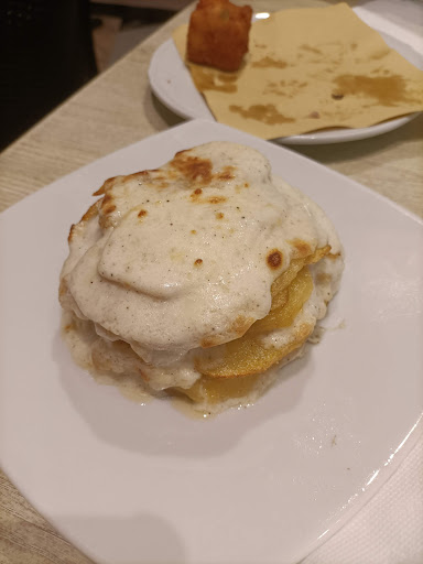 Read moreDomenica 17 dicembre eravamo di passaggio e ci siamo voluti fermare per il pranzo. Entriamo dentro alle 12.30 e chiediamo se era possibile mangiare. Ci viene detto di sì e scegliamo un tavolo in sala dove ancora il cameriere insieme al proprietario apparecchiavano la sala. Dopo 20 minuti di attesa finalmente apparecchiano anche il nostro tavolo. Da premettere che appena siamo entrati abbiamo chiesto se fosse possibile far preparare un piatto di pasta al pomodoro per la bimba di 2 anni. La sala era quasi vuota. Dopo un ora abbondante arriva la pasta della bimba e subito dopo delle frittelle , dopo quasi mezz'ora quindi alle 14 ci arriva un antipasto con capello/pelo annesso e lo facciamo subito presente e loro scusandosi ne portano un altro. Nel frattempo la sala si riempie parzialmente e qui arriva la furbata. In pratica loro proponevano un menu a base di baccalà che tutti hanno scelto quindi per preparare il primo abbiamo dovuto aspettare che tutti mangiassero l'antipasto così con una sola calata di pasta preparavano per tutti. Tipo mensa. Alle 14.30 il camino inizia a emettere fumo nero in sala al punto che tutti si sono alzati per scappare verso una porta secondaria alle nostre spalle chiusa a chiave e ci siamo ritrovati tutti insieme al mio tavolo come fratelli di avventura. Infastidito del fatto decidiamo di andare via, il cameriere inizia ad urlarmi STIAMO LAVORANDO PER VOI E MI INVITA AD ANDARE AL MC DONALDS, il proprietario macrito senior invita alla calma e con molta ltrqnquillita mi prepara il conto cercando di giustificarsi. Si paga i due menu del giorno per intero senza pagarsi la pasta al pomodoro. Mai più tutto FUMO e niente arrosto....