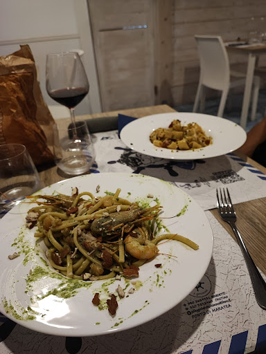 Bel ristorante nel cuore di Maratea. Sulla location non ho nulla da obiettare. Per quanto riguarda il cibo, molto buono l'uovo con bruschetta di caciocavallo e peperoni cruschi, buoni i primi, decisamente meno la frittura. Il motivo per cui metto due stelle è un altro. Vi racconto la nostra esperienza. Siamo ormai abituati a ristoranti gourmet e a porzioni non eccessive, ma non era questo il caso. Abbiamo ordinato quattro antipasti e quattro primi. Il primo da me ordinato è arrivato molto prima degli altri tre e privo di pesto al pistacchio. Ovviamente gliel'ho fatto presente e me l'hanno riportato con una spruzzata di pesto sul bordo del piatto. La frittura di pesce, al modico costo di €16, era più insalata che altro. Dopo aver terminato di mangiare, ancora affamati, abbiamo ordinato due porzioni di patatine. Appena sono arrivati al tavolo i due piatti di patatine, ci siamo resi conto che erano poche ma eravamo ancora convinti fossero quelle le loro porzioni. Pochi minuti dopo è passata la cameriera con un altro piatto di patatine destinato a clienti ben più fortunati. In quel momento mi sono accorta che le porzioni erano decisamente più abbondanti, ma, non so per quale ragione, le nostre erano state dimezzate, fino a diventare striminzite. Appena gliel'ho fatto notare, mi ha prontamente risposto che era il piatto ad essere più piccolo. Pochi minuti dopo è passato un altro cameriere con lo stesso primo che avevamo ordinato noi ed ho avuto la prova della sola che hanno cercato di rifilarci. A quel punto non ci ho visto più. Ho richiamato il cameriere per farglielo notare e, in palese difficoltà, per rimediare ha portato altri due primi centrali, stavolta crudi. Vi ho raccontato la mia esperienza per dirvi che la qualità è buona, i prezzi un po' alti, ma la negligenza del cuoco assolutamente incommentabile. Non si possono spende €158, anzi €150, considerando €8 di sconto (1 bottiglia di vino, 2 di acqua, 4 antipasti, 4 primi e 2 patatine) senza essere né soddisfatti né tantomeno sazi. Non credo rifarò questa esperienza. Solidarietà per l'unica cameriera che era assolutamente mortificata per i numeri che sia in sala che in cucina...