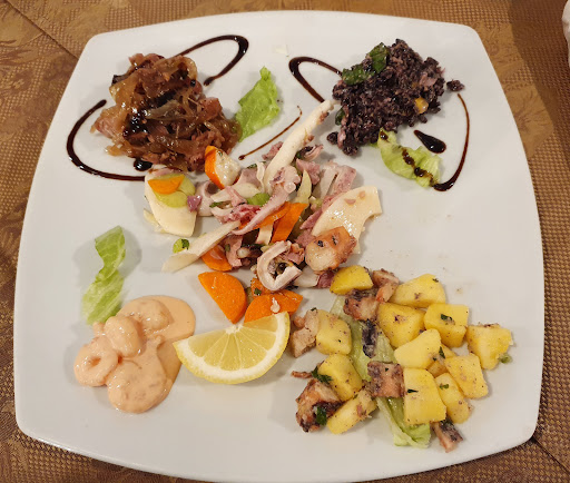 Read morePrima e ultima cena in questo ristorante. Abbiamo scelto il menù di pesce "fresco" .... solo gli antipasti erano buoni, i due primi e i due secondi non accettabili : porzioni minuscole per i secondi, un piattino di frittura con solo alici e due calamari per 4 persone. Il menù includeva anche il sorbetto che non c'è stato perché la macchina era guasta.... Un menù di pesce che costava 30 euro a persona ma che ne valeva appena forse 20.... La cosa scandalosa è il modo di fare il conto alla cassa : prezzo finale arrotondato senza nessun dettaglio dei piatti consumati !!! Ovviamente in loro favore perché abbiamo pagato più di quello che abbiamo mangiato. Un esperienza disastrosa che non...