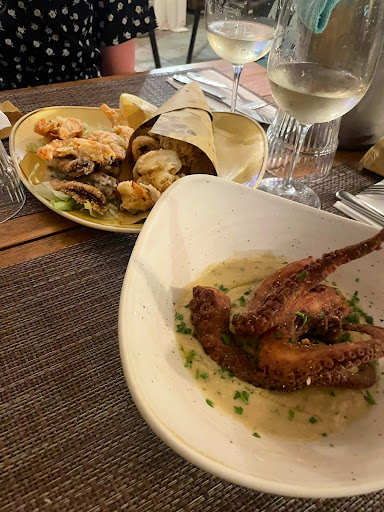 The food was very average. We got the octopus and the fried seafood. They were both overcooked. There was an asterisk on the menu to suggest that these were frozen, which we only realised afterwards.