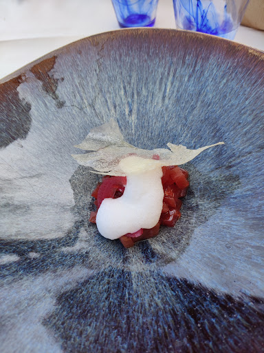 Read moreWe were lucky to get a table here without booking. Our table was right next to the rocky shore with a beautiful view. The starter of La Caponata Siciliana was, for me, the standout dish. It's not much to look at but the flavours (based on aubergine) were exceptional. My main of Rigatoni with Pumpkin, Sauris Bacon and Pecorino Cheese was beautifully cooked and tasty but perhaps too subtle flavours following in intense flavours of the starter. We had a well selected glass or two of their local wine which was very good. It's not the cheapest but it's...