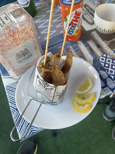 Luogo molto piccolo 4 tavoli, si muore dal caldo e ci sn tante zanzare. Io e il mio ragazzo ci siamo recati qui per le recensioni positive che abbiamo lette, ma le devo assolutamente smentire. Prima cosa da questo locale Nn si vede assolutamente il tramonto, il sole si nasconde dietro la Scogliera. Lo spritz Costa 4.50 come in quasi tutti i posti, ma non é fatto bene, ci è stato servito con una cannuccia all'altezza del bicchiere che ho fatto fatica a berlo. Inoltre come stuzzichini una ciotolina di popcorn. Crocchette di patate buone ma salate, quella che spacciano come focaccia è una piadina comprata al supermercato, lo speck (in piccola quantità ) e il brie erano buoni. Per quanto riguarda il panino cotto e mozzarella, gli ingredienti buoni ma il pane no. Tutto quello che ho preso da mangiare il costo era di 5/6 euro. Buono il prezzo delle birre beck's 3 euro e Tenness 4 euro che le consiglio...