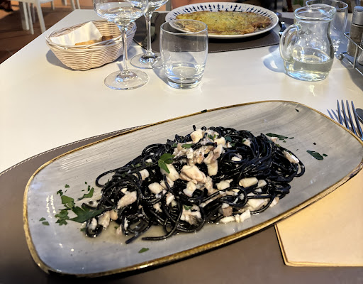 Ristorante presso l'omonimo hotel che, per una clientela esterna in cerca di una cena a prezzo "calmierato", può essere un SI, perché i prezzi sono buoni e si può anche usufruire del menù proposto alla clientela residente (primo - secondo - contorno scelto dalla lista del giorno, mi pare sui 32/35€). Per una clientela esterna in cerca di un buon ristorante dove passare la serata può essere invece un NI. Per quanto riguarda l'ambiente, qui niente vista panoramica o vista tramonto, si cena sulla terrazza esterna dell' hotel che è in paese e contornato da case, il mare in lontananza si vedrà dalle camere ma non dalle terrazze ristorante e men che meno il tramonto. Panorama a parte, il problema è che l' ambiente in cui si mangia è molto caldo e non ci sono pale a soffitto, ventilatori o nebulizzatori che possano dare un po' di sollievo (giudizio 2). Servizio: le persone sono davvero molto carine e gentili ma il pane (che dovrebbe esser sempre servito subito assieme alle bevande) abbiamo dovuto chiederlo un paio di volte ed è arrivato quando ormai avevamo finito di cenare. È evidente che qui si cerca di servire con sollecitudine i clienti residenti e che i loro piatti sono già di fatto pronti, ma non fa certo piacere vedere che persone arrivate ben dopo di voi arrivano al dolce quando voi state ancora aspettando il pane (questa cosa risulta anche in altre recensioni, quindi è sistemica). Un piccolo investimento in glacette per il vino sarebbe poi opportuno e auspicabile, considerato anche il caldo della terrazza. In sostanza, per simpatia i gestori e il personale meriterebbero anche 5 stelle, ma il servizio, l' organizzazione della sala e la gestione clientela esterna / interna è da migliorare, altrimenti meglio concentrarsi sulla clientela interna e lasciar perdere di proporsi come ristorante alla carta. I piatti .. si, sono buoni, un bene lo meritano (3 stelle), anche se nulla di particolarmente originale. I prezzi dei piatti principali sono onesti e coerenti con quanto offerto, sicuramente superiore alla media è il rapporto prezzo / quantità 😁 Di contro, gli antipasti, risultano in rapporto ben più cari, per esempio il tagliolino al nero di seppia abbondante e ben condito con pesce e menta che metto in foto costa €16 mentre il totanino all' elbana (una fettina di polenta grigliata 10x10 cm con pezzettini di calamaro agrodolce) come antipasto costa €15, non c'è proprio proporzione. Vino elbani in bottiglia con ricarico onesto. Insomma, un bene alle ricette del generoso chef, ma un po' di cose da rivedere e aggiustare se volete mantenere anche i menù e i...