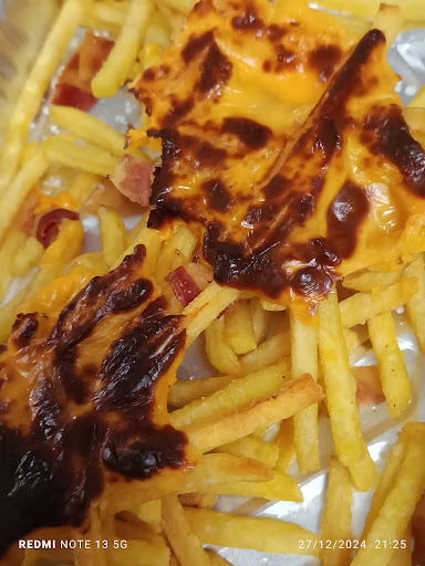 Read moreIo e una amica abbiamo usufruito del servizio di glovo per ordinare del cibo in questo posto, il corriere non ha lasciato il giusto resto, mi doveva 7,40€ ma ne ho ricevuti solo 6€, perché il driver non aveva i 0,40 centesimi e non mi ha dato l'euro di resto; ma la cosa più sconcertante è il cibo . I crocchè erano freddi e non potevano ,per il loro aspetto, essere definiti tali; poi abbiamo ordinato della patatine fritte con "cheddar" e bacon, (il cheddar era un tutt'uno, e il bacon carbonizzato. PS. Ho provato a sciogliere il cheddar per pochi secondi ma con scarsi risultati,per questo sembra "bruciato"); e per finire abbiamo ordinato delle frittelle, buone ma eccessivamente...