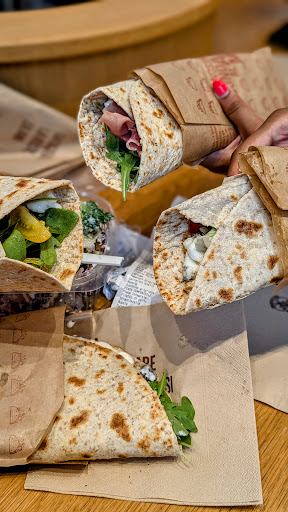 Read moreFinalmente un altro locale per pranzare qui alla reggia designer outlet! Ho pranzato già altre volte alla piadineria ma in altri luoghi. La qualità dei prodotti è sempre eccellente e volendo c'è scelta tra cose che possono essere abbastanza leggere per una dieta sana ad altre che possono essere un po più impegnative per il nostro amato stomaco. Le combinazioni sono veramente infinite e tutto è molto buono io ho ceduto alla specialità del giorno con pollo patate insalata e maionese a cui ho aggiunto il gorgonzola, con il rotolo la farcitura è più sostanziosa del 50% e le quantità sono giuste ed equilibrate. Il locale è molto carino e ci sono svariati posti a sedere e anche la possibilità di ordinare da display. Le quattro stelle non sono per la piadina che era eccellente veramente molto buona ed è stata preparata in maniera rapida! Ma semplicemente perché non mi è stato dato un vassoio anche avendo specificato che avrei consumato sul posto. Vi consiglio di passarci se volete una cosa veloce e non troppo...