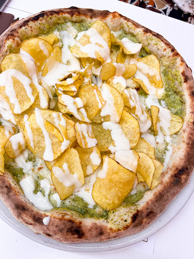 Dopo un pomeriggio di prove in pieno centro a Napoli, avevo bisogno di scappare da tutto quel caos e, sulla strada del ritorno verso casa, mi sono fermato in questa pizzeria. Lo stile dell’arredamento non è tra i miei preferiti ma sono gusti miei peró, sicuramente, è tutto curato nei dettagli: pulito, senza cattivi odori(anche il bagno nonostante immagino abbia i suoi “kilometri” accumulati), molti tavoli hanno a disposizione la presa usb per caricare il telefono, i tavoli non traballano… c’è la mano di un designer e si vede: scelta non scontata viste le accozzaglie che spesso si trovano in giro. Ad accogliermi una donna giovane e sorridente, modi molto garbati. Il menù dettagliato e completo va dagli ingressi fini alla lista degli allergeni(versione sia cartacea che tecnologica con il QR code) passando da panini, birre e vini. Il menù comprende anche la specifica degli impasti che si possono scegliere, quello tradizionale e quelli con farine di grani originari diversi e le loro caratteristiche.