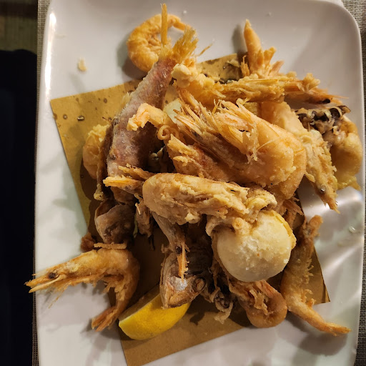 Read moreUn posto dalle alte aspettative ma anche dalle facili delusioni...sarà per via del pienone della giornata,ma non ci sono scusanti. Antipasti: Seppia al sugo accettabile ,ma ricaldata oggi e cotta ieri. Baccalà mantecato salato Polpo buono! Con grande entusiasmo per i nostri 4 primi allo spaghettone alla bisque di gambero rosso...niente di che i gamberi rossi vengono dal mare erano buoni ma il primo sembrava uno spaghetto al pomodoro (forse sarebbe stato meglio) insipido e senza carattere di sapore dato da una bisque fatta a modo,due gamberi violetti non puliti correttamente. Vabba mangiamo per fame... Dulcis in fundo fritture da 25 euro, che non valevano nemmeno 5 euro...200 g di frittura,gamberi bianchetti stracotti e totalmente spariti ,calamari idem gommosissimi scomparsi , due trigliette contate uniche buone..davvero credo che sia la peggiore frittura della mia vita ad un prezzo esagerato per assurdo...alla fine il conto è esagerato ma tu dici i prezzi li vedi,certo che li vedo,ho mangiato anche a prezzi piu elevati ma che ripecchiavano un indice di qualità e accuratezza...molto deluso e non tornerò mai piu anche perchè al conto nessuno chiede come è...