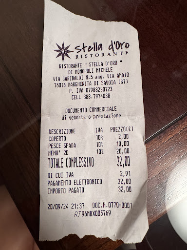 Read moresinceramente non pensavo di dover dare 1 stella a questo posto sia per l accoglienza e la disponibilità nel cercarci un posto all esterno nonostante fosse tutto prenotato,(circa 20 coperti) sia per la gentilezza di chi ci ha accolto, ma ahimè tutto è svanito iniziato il servizio. eravamo in 4. comanda presa con semplicità e cortesia. arrivati i primi a 2 di noi, troppi minuti per l arrivo degli altri 2 primi e quindi nell attesa i piatti si sono raffreddati. pane finito e scarsa visione del cameriere nel provvedere a rimetterlo. all arrivo della frittura e calato il gelo. senza sale e porzioni davvero troppo misere, x non parlare della frutta di stagione, un triangolino di anguria. capisco i 15 euro del menu, ma al giorno d oggi dove la concorrenza di questi menù è spietata e si trovano anche a 10, il menu deve essere rivisto nelle porzioni o per lo meno nell aggiunta di un contorno (insalata verde e pomodoro, patatine fritte, o qualsiasi altra cosa). altro particolare fondamentale è l impossibilità di venire incontro al cliente che non beve il vino cambiandolo con una lattina di bibita o una birra piccola. e stato risposto se volete ve lo porto poi se non lo bevete lo lasciate lì...infine all arrivo Dell anguria la triste battuta del "ma che fate mangiate con le mani?"...altra disattenzione del cameriere che non ha messo le posate per la frutta... e stata una recensione sincera e rimango davvero dispiaciuto doverla scrivere per un ristorante situato in Margherita di Savoia... cittadina che frequento da quando sono piccolo e che adoro...