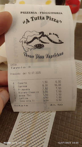 Ho deciso di recensire questa pizzeria solo dopo anni che continuo a tornarci , nonostante l'avvento degli impasti contemporanei ad alta idratazione , devo dire che pur mantenendosi sul classico verace , se la gioca abbastanza bene. Si può prenotare anche di sabato , a dispetto di tanti altri locali che nei week end ti constringono a file interminabili pur di massimizzare ogni secondo della serata , creando non pochi disagi ai clienti che per tempo o necessità possono godersi la serata solo nei fine settimana. Detto ciò , il locale é non troppo grande , una cinquantina di coperti , gestiti abbastanza bene dalle ragazze presenti in sala . Il termine che più si addice a questa pizzeria é qualità /prezzo. Nonostante tutti ormai hanno deciso di passare a doppia cifra anche per pizze non particolari ,( A Tutta pizza) é rimasta sotto ,ma solo per il prezzo senza peccare di qualità . Impasto con idratazione intorno al 65% credo , farina 0 o 00, abbastanza leggero ,che abbinato a buoni prodotti ti regalano un pizza buona e digeribile. Personalmente , ordino sempre la matador , spettacolo per gli occhi e per il palato, e la fustacchio dove viene perfettamente abbinata mortadella Filadelfia e spolverata di pistacchio . Di solito alla fine invece del classico dolce , ordiniamo le chicchere, sono straccetti di pasta per pizza zuccherati , che possono essere insuppati in ciotole medio /grandi di cioccolata bianco o nero , deliziosi.... Morale della favola , due persone che mangiano pizza a scelta con birra o acqua , con chicchere finali , non spendono più di 25 /30€ , non male di...
