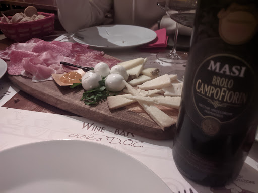 Eravamo in 5. Abbiamo ordinato Un tagliere di salumi e formaggi per tre Due tapas di fagioli alla messicana Due tapas una sorta di saltimbocca, rotolo ripieno Due focacce ripiene con stracciata e mortadella Una tagliata di carne Due bottiglie di Valpolicella Ripasso Superiore di Zenato (28 euro a bottiglia). Ci hanno offerto i cantucci con il vino Santamessa.