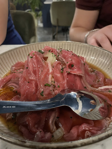 Read moreSono stato a cena con la mia famiglia in questo locale di nuovissima apertura e come prima esperienza è stata bellissima anzi buonissima . Tra una portata e l'altra abbiamo avuto il piacere di conoscere Antonello,il caposala, persona molto preparata che tra una chiacchiera e l'altra mi ha consigliato un carpaccio "PICANHA PONZU" che oltre alla bellissima presentazione aveva dei sapori fantastici che sono stati esaltati ancora di più dal vino che mi è stato abbinato e dal cestino di pane di loro produzione leggero e friabilissimo. Nulla da dire anche sul panino gluten free e sui vari antipastini con dolce finale. Infine Antonello mi ha presentato lo Cheef,una persona molto giovane al quale ho fatto i miei complimenti per la PICANHA in particolare . Come ho riferito ad Antonello ci rivedremo presto per il Wagyu Americano. In ultimo tenevo a precisare che avete una professionalità che in pochi hanno e questo per me fa la differenza. In bocca al lupo per...