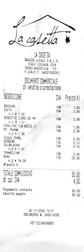 Mi spiace molto perché l’ambiente è davvero carino e si mangia bene ma il prezzo dei piatti, per la quantità e tipologia di cibo è come al ristorante, e se si chiede un’aggiunta di crema ad una brioche (suggerita da loro) viene addebitato un costo di €2,00 (la trovate segnata nello scontrino come 2 aggiunte di panna a 1€) oltre il prezzo della brioche che costa €1,80. Quindi TOT €3,80 per una normalissima brioche alla crema. Insieme all’acqua a €3,00 da 0,75 mi sembrano veramente cose spiacevoli, poco trasparenti e non adatte ad un bar bistrot. Se i titolari mi confermeranno che c’è stato un qualche tipo di errore rivaluterò di tornare sicuramente, altrimenti per me...