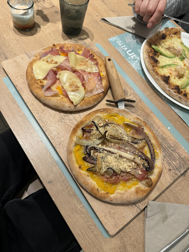 Perfino l’impasto è croccante, soffice e “unto” al punto giusto. Mi ha sorpreso l’impasto senza glutine, che è a dir poco il migliore della zona (un po’ costoso ma ne vale la pena). Pizze stagionali ed innovative, con abbinamenti intriganti e deliziosi. Ho provato la combinazione di due pizzine, per assaggiare due gusti di pizza: dividono un impasto a metà e fanno due pizze piccole, così da farti assaggiare due gusti diversi, ad un prezzo minore delle 2 pizze grandi.