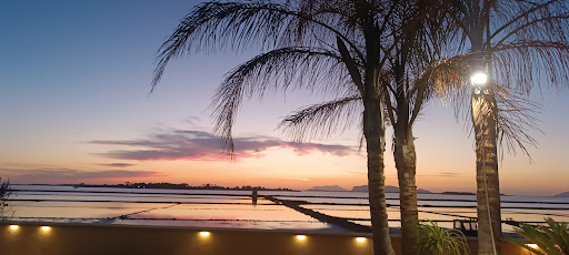 Read moreIl tramonto sulle saline di Marsala con il sole che scende lentamente dietro le isole Egadi è un meraviglioso spettacolo della natura. Lo abbiamo ammirato dalla Terrazza sulle saline un locale che offre la possibilità di sedersi su poltroncine e divanetti di vimini con tavolino basso su un rigogliosissimo prato verde oppure su sedie azzurre e tavoli di legno per bere un aperitivo o cenare. Non essendo amanti del pesce crudo abbiamo optato per cibi che poi si sono rivelati essere un buon tagliere di salumi dei Nebrodi, un delizioso tagliere di formaggi accompagnati da marmellata e miele, delle beruschette al pomodoro e dell'ottimo vino rosso. La serata è trascorsa in tranquillità ascoltando musica piacevolissima e chiacchierando con il gentilissimo personale del locale per concludersi con un bicchiere di Donna Fugata e dei cantucci. Non è semplice leggere il nome "La terrazza sulle saline" in quanto è scritto in piccolo, sull'insegna di legno risalta la scritta "Lounge bar" per cui fate attenzione. Quando sulla strada a senso unico che porta alle saline troverete un signore che vi indicherà di parcheggiare in un campo non fatelo. Tutti i locali sono dotati di parcheggio dove non vi verranno chiesti due euro. Non è l'unico parcheggio abusivo sulla strada e credo possa servire solo a coloro che vanno a visitare la salina nel mulino o devono effettuare il giro dello Stagnone in battello in quanto il parcheggio adiacente ci è parso con pochi posti rispetto al numero di...