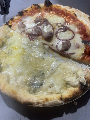Passando al cibo, devo dire che le pizze sono state semplicemente straordinarie. La base era sottile e croccante, proprio come piace a me, e i condimenti erano freschi e di alta qualità. Ho provato diverse varianti di pizza, tra cui la Margherita e la Diavola, e tutte erano deliziose. L'impasto era leggero e digeribile, mentre i formaggi e le salse si combinavano perfettamente per creare un gusto eccezionale. Ogni morso era un piacere per il palato.