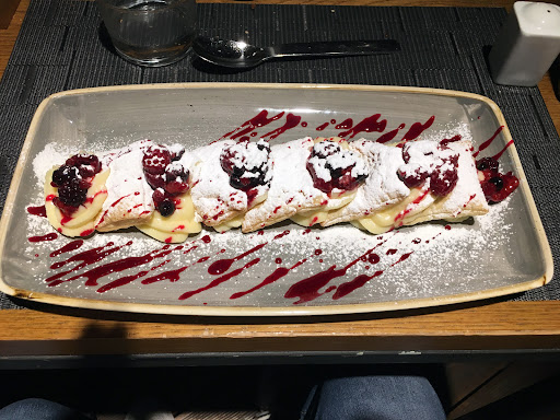 Read moreLocale dalle buone potenzialitá, cibo buono nulla di dire e quindi positivo, ma niente di degno da ricordare (anche se non ho segnalato che la mia tagliata di tonno non era a cottura media come chiesi su loro espressa domanda) e un inaspettato intrattenimento di piano, ma il servizio per me é da migliorare perché se una sola persona prende le ordinazioni si rischia di aspettare un po', perché i camerieri - a parte una ragazza - sono sembrati un po' troppo ingessati tentando di far sembrare un locale di un livello superiore a quello che é (o che vorrebbero che fosse), perché se chiediamo ad uno qualsiasi di loro se si puó chiedere una richiesta al pianista e questa persona non lo sa, dovrebbe informarsi invece che farfugliare qualcosa e poi assentire alla nostra idea di provare nell'intermezzo di un pezzo e l'altro, infine perché a tratti si notava una piccola confusione tra i camerieri. Forse si sono resi conto che non erano al top ed hanno effettuato un piccolo ma gradito sconto (10€) da noi non richiesto, ad ogni modo prezzo nella media. Ho segnalato un disguido con il tavolo di ciò che poteva annidarsi tra marmo e telaio. Ultimo ma non meno importante, soprattutto di questi tempi, mancanza di sapone in entrambi i bagni...