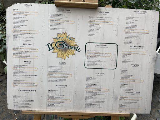 … in pausa da un sopralluogo a Viterbo, in viaggio verso Farnese, sentendo un languorino, provo a cercare lungo la strada un posticino accogliente dove magiare qualcosa A sx scorgo l’insegna di un ristorante che cattura la mia attenzione, non essendo una bellissima giornata il “Girasole”, mi è sembrata la scelta giusta, almeno come inizio, da lì a poco avrei verificato, perciò… Il posto è molto accogliente, un ampio parcheggio ti accoglie ed una scaletta ti dà l’accesso al ristorante Gli interni sono ben curati e la mise en place attenta ai dettagli, ci sono un po’ di persone anche se non è proprio l’ora di pranzo, è un po’ più tardi, ma mi accomodo ad un tavolo nell’angolo accanto ad una famigliola con un marcato accento barese in gita Il menù è visibile sia dall’app. inquadrando il QR code, sia fisicamente, preferisco l’elettronico e me lo scarico, noto con stupore una vasta gamma di piatti di pesce e non riesco a capirne il motivo, ma voglio mangiare carne e quindi concentro la mia attenzione su una tagliata di limousine rucola grana e pachino, patatine fritte e mezzo litro di rosso della casa, qui in zona di solito non si sbaglia mai e non si sballano i prezzi del conto Il servizio è discretamente veloce, ma mi stupisco che non mi abbiano chiesto la cottura della mia tagliata, ma dopo un attimo sono di ritorno x chiedermelo e tutto si risolve con una cottura abbastanza sanguinolenta Il tempo di friggere le patatine ed il gioco è fatto, la carne è tenerissima date le notevoli marezzature della carne, che poi mi spiegano essere allevata proprio in zona, x cui a km. 0 e sono proprio soddisfatto della mia scelta Poi chiedo un dessert e mi viene proposto uno zabaione della casa che mi intriga non poco, veramente spumoso e profumato di marsala con due triagolini di sfoglia croccante a cotè, delizioso … all’ingresso avevo notato un bel bar in cui c’erano delle importanti bottiglie di rum, mi faccio portare un XO di BUMBU, servito in bicchiere preventivamente scaldato x esaltarne i profumi, veramente notevole accompagnato da 3 bei pezzi cioccolato fondente Credo proprio di aver individuato il posto giusto in zona a Viterbo e credo che sarò presto di nuovo vs....