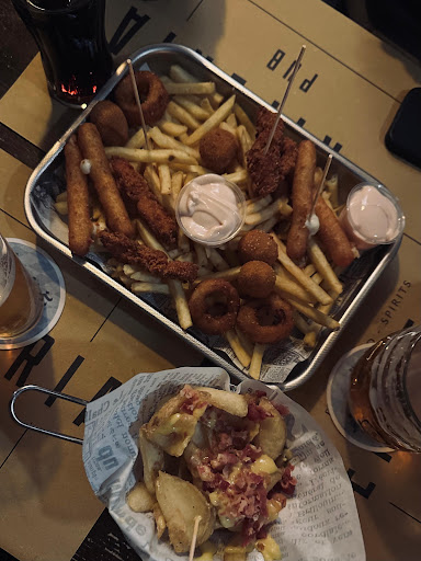 Entro per la prima volta su invito di un'amica. E' un pub medio, nulla di incredibile, anzi, le sedute sono un pò scomode. Tende ad essere molto confuso il parlare ad un tono normale vista la mole di gente che, oltretutto fomentata dalla partita e dalle conseguenti birre, fa molto, veramente molto chiasso, però è un pub, se non vuoi l'ambiente del pub semplicemente cerca altro. Il menù è davvero vario, sono curioso di tornare per assaggiare i panini. Abbiamo preso dei "bocconcini di pulled pork" confezionati che avevano davvero poca ciccia dentro anche se al sapore buoni. Le salse suppongo siano confezionate, se siete amanti sicuramente riconoscerete addirittura la marca, ma buone e varia la scelta. Il ragazzo che spina le birre simpatico a differenza della cameriera che ci ha serviti che sembrava essere infastidita. In oltre ho pagato il coperto senza avere neanche una tovaglietta tra il piatto e il tavolo o i prezzi delle birre sono alti anche se molto buone. Non saprei identificare il problema perchè anche se ho pagato con carta non mi è stato dato scontrino.