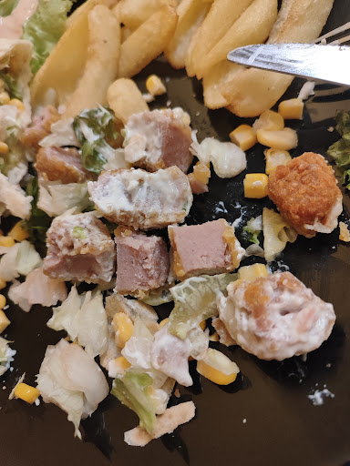 Eravamo andati con l'intenzione di fare solo "aperitivo" perché già sazi, non volevamo fare chissà quale cena, volevamo solo un piatto da smezzare in due. Su consiglio (aka pressing) del cameriere o cuoco (non ho ben capito), a lui risultava che il piatto fosse troppo piccolo per 2 persone (palesamente non gli andava di far pagare un piatto per due), indicandoci la promo dei nachos del lunedì: a detta sua la cena gli risultava così più "completa". Bene, il primo piatto era una sberla già di suo, (ricordate che volevamo solo stuzzicare?), quindi POTEVAMO benissimo mangiarlo in due e riempirci. Il piatto di nachos invece era praticamente il doppio, davvero troppo. Abbiamo mangiato tutto perché non amiamo sprecare il cibo, però non ci siamo gustati e goduti nulla... Abbiamo mangiato per forza (potevamo imporci anche noi, per carità). La qualità del cibo era discutibile (mangiabile eh), non pretendo la cosa fresca fatta al momento, ma già non c'era molta gente, un po' di attenzione nei riguardi degli unici clienti della serata potevano darla. Cibo comunque riscaldato a microonde. Devo aggiungere che ho anche avuto la sensazione che il cameriere ci ronzasse un po' troppo intorno mentre mangiavamo e parlavamo, sembrava facesse finta di tenersi impegnato per poter "origliare" i nostri commenti: anche questo l'ho trovato abbastanza fastidioso e di pessimo gusto. Dulcis in fundo, a quanto pare non "andava" il pos per 20€ di cena... Mah, l'ho trovata strana questa cosa, ho pagato ugualmente in contanti senza fare storie perché volevo solo andarmene via. NON LO CONSIGLIO e non ci tornerò mai più, una bella pec la scriverei a chi di dovere: un posto con così tante recensioni negative sarebbe...