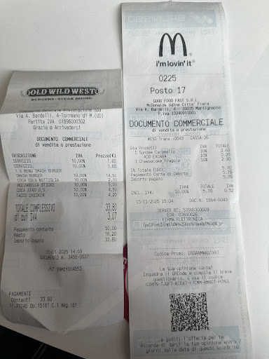 Read moreI was usually satisfied with Old Wild West in Italy. It's a burger place with also a steak and salad option. They have interior in old wild west style and you get peanuts on the table while you wait. Usually great experience for a fast food mall restaurant. This time, there was no peanuts, service was official. Burger bun was dry, meet was partly overcooked and partly raw. When she brought the food to the table few french fries fell of the plate, she seemed clumsy. It all just seemed like everyone there are tired and...