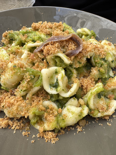 Wow - couldn't recommend this restaurant more highly! We had such an incredible meal and the staff were so kind and genuine. We came 20min late for our booking due to parking difficulties but they were not at all fussed and accommodated us immediately. We had both orecchieti dishes and they were incredible - couldn't recommend this restaurant more for authentic Puglian home cooking at extremely reasonable prices. Even the bread and foccacia for the coperto were delicious and homemade (as were the very fresh vegetables they gave us!). Our only regret is having had a degustation at our agriturismo earlier in the evening and not having enough space to try more food here or any of their wines! Absolutely recommend going here for a great meal, you won't regret it! Both orechietti (tomato and turnip) were one of the best pasta dishes we had in 3...