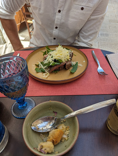 Read moreWe stumbled upon this restaurant and sat at a pavement table. All the staff were excellent, friendly and the young waitress who spoke excellent English made our visit special. The shared antipasti was exquisite, with the mushroom soufflé delicate and golden; golden Herby pink meatballs and a delicious platter of meats and cheeses. The Oricchiette with ragi had such tender meat and the pasta with rapé and anchovies was tasty. The glass of local red wine was light and fruity and the chinotto a splendid local alternative to cola. Good value for €75, but the staff attitude (including shifting the umbrella as our table became exposed to the sun) made it an excellent stop....and the onstreet parking nearby was free...