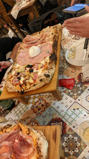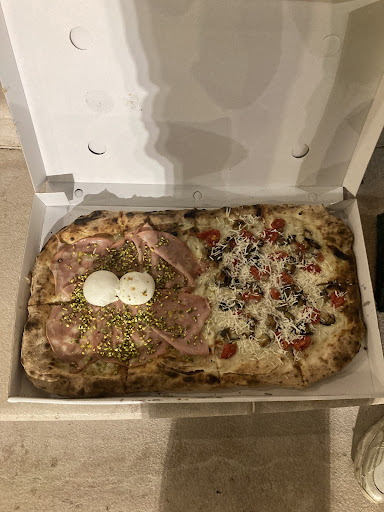 We regularly come here to pick up our pizza, and it’s always a great experience. This lovely, family-run pizzeria is a local favorite, where you’ll often find residents dining. They offer both the classic round pizzas and impressive half-meter options, all made with the same delicious dough. We highly recommend trying the Mortadella, Burattina, and Pistachio pizza – it’s really a dream! 😉