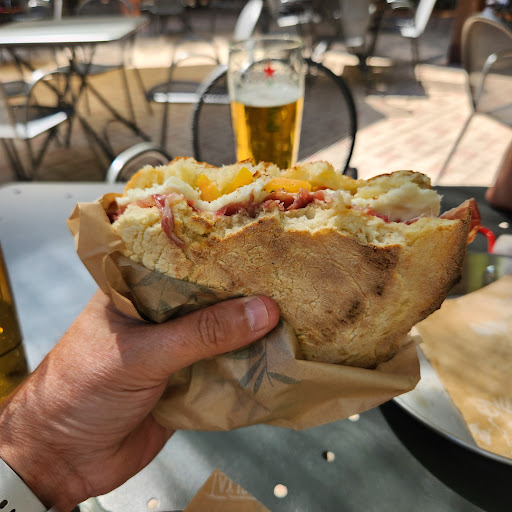 Read moreWonderful place! Beautiful pine trees over picnic tables make for a wonderful place for a coffee, beer, or food. We had breakfast with PANCAKES! Delicious, and the cornettos were fresh fresh fresh! Very nice people work here and this place should be on your schedule if you are...