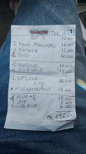 Ieri sera abbiamo prendotato telefonicamente un tavolo per tre adulti e due bambini per le 21:30... arrivati sul posto abbiammo subito trovato posto libero per parcheggiare e siamo entrati... accoglienza perfetta molto familiare... ci siamo seduti fuori in terrazza... ambiente semplice... molto tranquillo ma pur sempre una terrazza del pianoterra di un condominio... e fin qui tutto ok... appena ci hanno portato i menù iniziando a leggere ci accorgiamo subito della poca possibilità di scelta e dei prezzi un pò esagerati... ma siamo andati avanti lo stesso e dopo qualche indecisione nostra abbiamo ordinato... Uno di noi aduti ha ordina un antipasto e un primo... gli altri due aduti hanno ordinato dividendolo per due... un'altro antipasto e un primo... per il secondo la ragazza ci ha consigliato di prendere al posto di due grigliate miste... una Spigola e sei gamberoni che potevamo benissimo mangiare in tre persone... e abbiamo accettato... i bambini hanno preso due primi al pomodoro e si sono divisi un'insalata di polipo (che era stata scelta come antipasto anche per loro)... I primi intoppi del servizio si iniziano a vedere arrivano i primi per i bimbi e dopo un pò arrivano i due antipasti che avevamo scelto uno per i piccoli e un per noi adulti... ed il terzo antipasto ci hanno detto che era in cottura... I piccoli hanno finito di mangiare l'antipasto di polipo e anche il primo al pomodoro... i due adulti che hanno diviso l'altro antipasto di polipo con molta tranquillità avevano finito di mangiarlo... ma dell'altro antipasto nemmeno l'ombra... chiedendo info alla ragazza ci dice ancora la stessa cosa che l'antipast ancora era in cottura... Dopo un' po di attessa finalmente arriva la papata di cozze... e subito dopo arrivano i due primi... Dopo circa 10/15 minuti arriva la spigola (intera) con i gamberoni... chiediamo alla ragazza se la poteva pulire per favorirci al meglio... Conclusione dei piatti Antipasti: Insalata di polipo Quantità... poca Prezzo... medio Sapore... buono