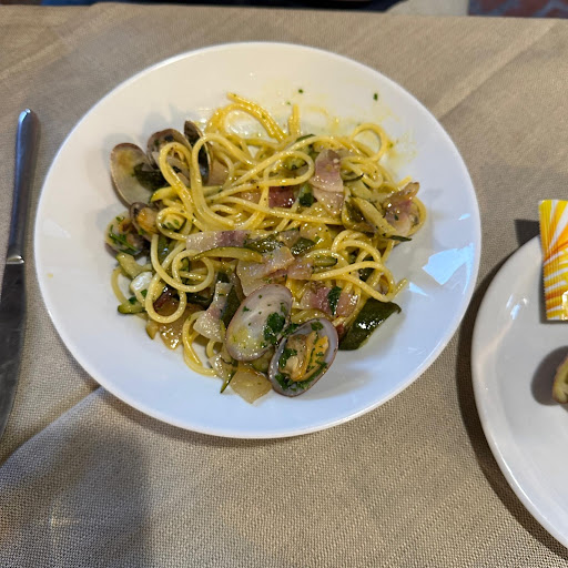 Eigentlich wollten wir in die Pizzeria gegenüber. Es war an diesem Tag aber "Schützenfest" mit der Armbrust und die Zielscheibe für die Pfeile stand vor der Pizzeria welche wir besuchen wollten. Also sind wir hier gelandet. Der äußere Eindruck war nicht so toll, etwas wie eine "Bahnhofsvorhalle". Ich dachte hier kommt nur die "Laufkundschaft" aber es war spät und der Ort war durch Besucher ohnehin überfüllt. Genau das das hat sich aber leider bestätigt. Auf meine Frage ob es ein Holzfeuerofen für die Pizza gibt wurde ehrlicherweise verneint, aber die Pizza sei sehr gut. Nach der Empfehlung des Kellners, welcher auch sehr gut deutsch sprach, hatten wir uns jeder dann doch eine Pizza und ein Glas Wein bestellt. Wir haben dann nur vieleicht zwei Stückchen von der Pizza probiert und das Essen dann enttäuscht abgebrochen. Frei dem Motto – man muss nicht alles Essen, nur weil es bezahlt ist! In Italien hätte ich eine deutlich bessere Pizza erwartet. Der Wein war gut die Pizza war deutsche Mittelklasse. Wir haben dann ein weiteres lokal aufgesucht und leider erst spät unser Abendessen zu...