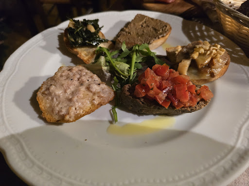 Read moreIl locale si trova in una ruetta nel centro storico di Massa Marittima, molto vicino alla cattedrale. Si parla di pieno centro storico, quindi non vi sono parcheggi o servizi adatti a tutti, ma tutti i ristoranti nei centri storici italiani hanno gli stessi problemi e gli stessi "disservizi" (non sono adatti a disabili con carrozzina o chi ha difficoltà motorie e i servizi igienici sono "adattati" alla meglio, ma del resto a rendere unici questi locali è proprio il fascino stesso della struttura), comunque nelle vicinanze ci sono moltissimi parcheggi a pagamento o se si vuole con due passi in più se ne trovano anche di gratuiti. Fatta questa premessa doverosa, parliamo del ristorante. È posto sotto uno dei palazzi storici di Massa Marittima, bellissimo e curato molto bene, con spazi studiati per dare ai commensali privacy e romanticismo, davvero un posto unico nel suo genere. I piatti serviti (foto menù) sono della cucina tipica Toscana con qualche tocco di modernità, ci sono a disposizione anche piatti vegetariani sempre legati alla tradizione della zona. Noi abbiamo degustato due antipasti (tagliere di salumi, crostini), due primi (una pappardella al sugo di cinghiale, una pici cacio e pepe con tartare di manzo), un secondo (filetto di maiale lardellato con contorno di fagioli zolfini) due caffè, un' acqua gassata e mezzo litro di vino rosso della casa, il tutto per 95€. Caro? Beh direi proprio di no, dato che comunque in zona i prezzi sono pressoché uguali, in più bisogna mettere in conto la location, sia per la posizione ma sia per quanto detto sopra, è un locale tenuto e curato molto bene. Un applauso va ai ragazzi e allo stesso proprietario che si prendono molta cura della clientela e sono pronti a soddisfare qualsiasi esigenza. Detto ciò, veniamo pure a qualche "imperfezione" o accorgimento che magari un occhio esterno può dare. Per quanto riguarda la location i gradini posti all'interno del bagno andrebbero segnalati meglio e bene in quanto la porta aprendosi verso l'intero rendono gli stessi un pochino pericolosi, meglio una segnaletica antiestetica che una caduta rovinosa. Per quanto riguarda le pietanze un pochino più di attenzione dato che i pici cacio e pepe se serviti in "ritardo" diventano colla e freddi, stessa cosa vale per il filetto di maiale che viene servito in 10 minuti, segno che è stato già cotto e pur se viene riscaldato per "sciogliere" il lardo al suo interno è freddo e molto asciutto. Anche se comunque i piatti sono buoni e ci tornerò volentieri, sarebbe meglio per il prezzo pagato attendere qualche minuto in più per assaggiare la pietanza alla giusta consistenza e temperatura. Sono piccoli dettagli, accorgimenti che fanno la differenza. Lo consiglio a tutti (tenuto conto quanto detto sopra), un locale da inserire nella lista...
