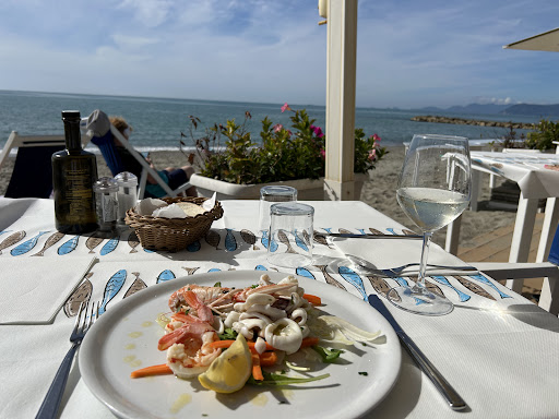 On se moque des étrangers dans cet établissement... Réservation effectuée par notre hôtel pour 19h30 le dimanche soir à notre arrivée sur Massa. Mi septembre donc pas trop de monde. Arrivée à l'heure par respect... la table n'était pas prête. Attente de 10mn, ça encore pas trop grave. On nous installe et là personne ne vient nous voir pendant que d'autres clients arrivent. Une, deux, trois tables de 6 personnes... Les gens sont servis en apéritif avant nous et leurs plats arrivent. Entre temps on nous dépose les cartes de menus sans rien nous demander, même pas si on souhaitait un apéritif... Je suis obligé d'interpeller une serveuse qui passe pour commander et dans le même temps on commande nos plats, un des plus chère à la carte. On nous amène enfin, au bout de 10mn, les apéritifs. J'avais l'intention de commander une bonne bouteille de vin pour le repas, un assortiment de fruits de mer et poisson, personne ne me propose du vin alors que les deux assiettes arrivent sur notre table... Obligé de réclamer du pain. Même pas une eau plate proposé. Honteux !!! Le constat, on en avait rien à faire de nous... et je reste poli. Sur ce, je décide de ne rien commander d'autre. Pas de desserts, ni cafés. Je voulais passer une belle et bonne soirée avec mon épouse, prêt à dépenser un maximum pour bien profiter. Tant pis pour eux. On a fini notre plat et on a réglé. Ils étaient surpris qu'on écourte notre repas. Vu de la façon que nous avons été reçu, servi, même si le plat était bon, nous sommes très déçu. Même la patronne était indue de sa personne. Le personnel pitoyable... Honteux pour un restaurant de station balnéaire !! J'espère pour vous que vous ne vivrez pas la même expérience que nous. Leur réputation a dû leur monter à la tête. La vue sur la mer ne fait pas tout. Si j'avais été en France, j'aurais fait un scandale... malheureusement mon italien de touriste ne me le permettait pas. Si vous pouvez, choisissez un restaurant en ville, avec de bons fruits de mer et bien mieux reçu. L'étoile déposée est de trop, établissement nul,...