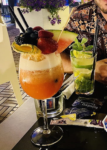 Da dimenticare….. Locale carino davanti solo davanti , bagni sporchissimi senza carta igienica, per il locale che sembrava mi aspettavo un bagno più curato. La parte bella ,ordiniamo una caipiroska al frutto della passione e un sex on the beach, arrivano 2 bicchieri con tanto ghiaccio e molto sciroppo quindi dolcissimi. Il cameriere ci chiede subito €16,00 , pago e li faccio notare che la caipiroska è pessima il ghiaccio tritato manca (che non esiste una caipiroska con ghiaccio a cubetti) La sua risposta è “ c’è tanta gente e abbiamo solo 2 barman uno ha …. …anni non può mettersi a tritare il ghiaccio , qui ci sono tanti ragazzini che prendono la caipiroska “ A questo punto io mi chiedo perché c’è nel menù se non siete in grado di farla , forse ai ragazzini può andare bene però a una persona adulta che fa e beve la caipiroska da più di 20 anni non potete servirla cosi. €8,00 ghiaccio con un po’ di wodka e tanto sciroppo è un furto. Spero che almeno lo scontrino lo avete fatto visto che sul preconto portato al tavolo c’era scritto di ritirarlo in cassa , sinceramente sarebbe più coretto portarlo al tavolo nel momento in cui si prendono i soldi. Locale da evitare sia come pulizia che professionalità. Che delusione….( per correttezza vi...