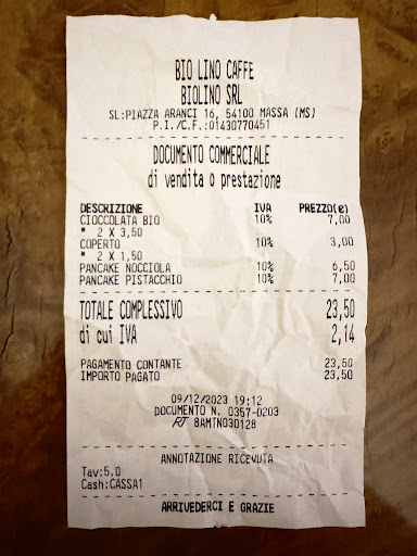 Read moreIl locale di per sé non è niente di particolare se non per la presenza di altalene al posto delle sedie nei tavoli vicino alle vetrate. Gli altri tavoli hanno sedie normali. Non saprei quanto possono essere comode le altalene perché non c'erano tavoli liberi alle vetrate quando siamo entrati. Il resto del locale è abbastanza anonimo, ma fortunatamente pulito. Sono presenti anche dei tavoli fuori sulla piazza, ma d'inverno fa freddo e non abbiamo visto dei funghi. Quindi, abbiamo preferito stare dentro. Per il locale direi * stelle. Il personale è gentile e disponibile. Siamo stati serviti da due cameriere molto gentili. Loro si meritano * stelle. Nonostante il prezzo le porzioni sono molto abbondanti, per lo meno quelle che abbiamo preso noi. Abbiamo preso dei pancake e per ogni piatto ce n'erano tre e non siamo riusciti a finirli. Erano anche molto buoni. Per il rapporto qualità/prezzo del cibo direi ** stelle. La nota dolente è stata il conto nel quale ci siamo accorti, purtroppo dopo, che abbiamo pagato il coperto: 1,50€ a testa. Sinceramente non avevo mai visto far pagare il coperto per la pasticceria. Quindi lo fanno pagare anche a colazione?? Coperto che poi consiste in una mini tovaglietta di carta delle dimensioni di circa 15x20cm e nelle posate pre-incartate. Posso capire se uno si ferma a pranzo o a cena dove nel coperto di solito è compreso anche il pane, ma per la pasticceria non ne comprendo proprio il senso. Sinceramente, oltre a sembrarmi una cosa molto ridicola, mi sembra anche soltanto un pretesto per far lievitare il conto e basta. Per l'esperienza generale * stella è più che sufficiente. Non credo che ritorneremo perché onestamente ci siamo sentiti molto...