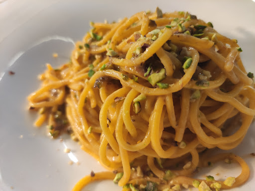 Read moreRistorante scoperto per caso durante una trasferta lavorativa, decido di fermarmi colpito dal buongusto che caratterizzava la facciata sulla strada lungomare. Una volta entrato trovo da subito conferma della scelta, pesce fresco visibile, competenza dei camerieri, locale sobrio ma elegante, e su tutto: cucina a vista, già, una cosa non consueta, davvero gradevole poter guardare e ascoltare gli chefs all' opera, la chiamata delle comande, le priorità, gli sguardi impegnati, il tutto sotto la supervisione del titolare che dirigeva come una fosse un' orchestra, anche se in cucina pareva visggiassero con le loro gambe, tranquillamente. Il piatto, opto per uno spaghettone ai frutti di mare, é delizioso, quantità giusta, sapore equilibratissimo, insomma buono senza ma. Due note, non negative, ma che solo hanno attirato la mia attenzione, nell'ordine, per il vino al calice abbasserei un po' l'asticella del prezzo (capisco per la bottiglia, ma per il calice, tiriamo un po' giù), i camerieri (non tutti) sarebbero ancora più professionali se un po' meno zelanti, appena posata la forchetta e mentre accingo al calice, non so proprio cosa voglio dopo e magari ho bisogno di qualche secondo in più, giusto qualche secondo, quindi zelanti ok...