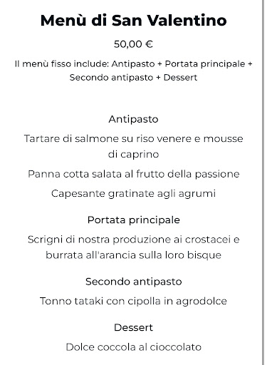 Read moreLocalino bellissimo con dettagli molto particolari ..... ambiente accogliente nelle vie del centro storico di Massa ..... cucina gourmet e prodotti di alta qualità ..... partendo dai primi al dessert tutte cose di propria produzione .... Complimenti a " Valentina " che ci ha accolto con una grande gentilezza e professionalità dandoci una dettagliata nei minimi particolari qualsiasi piatto che abbiamo scelto ..... molto preparata x la conoscenza dei prodotti e le materie prime e sulla gamma dei vini ..... L unica cosa secondo me negativa il "conto " ..... ( un antipasto un primo e due calici di Franciacorta e due dessert .... e basta .... troppo ma...