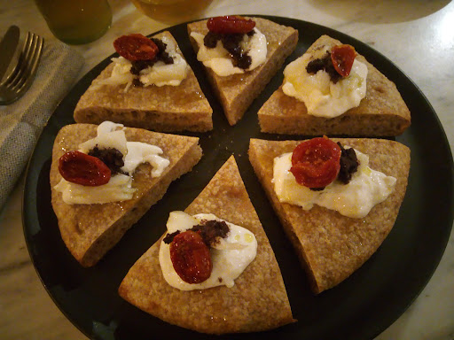 Aggiornamento. Se per il brunch mi sono trovata molto bene mesi fa, non mi ha soddisfatto molto la cena. Intanto menù scritto a mano su fogli di carta per alimenti, per nulla a tema con l'arredamento, ok magari creano il menù sul momento. Non ci sono antipasti, primi, secondi, ma una roba tipo "presentazioni, paste, speciali, etc" ora non ricordo esattamente. Premettiamo che hanno fatto una cosa carina, molto "ingredienti dop, biologico, certificato, con farine speciali" che ora va molto di moda, ma i prezzo sono da follia. "Pizza fritta", che è un grosso gnocco fritto con dentro e sopra il pomodoro, introno basilico frullato (crema) e di fianco una cucchiaiata abbondante di "spuma di bufala". Lo gnocco era buono, e abbondante, ma questa "spuma" oltre a non entrarci nulla, era veramente insipida, quasi come l'albume d'uovo, che vagamente sapeva di latte (€6). "Crostino toscano", 5/6 polpettine fritte di fegatelli con sopra dei condimenti. Dicono buono, ma un po' alternativo (€7). Frittura di mare, con totani, gamberetti, acciughine: sembrava impanata con una farina speciale, tipo polenta, sinceramente senza sale del tutto. Buono, ma sciocco. Non ricordo il prezzo, ma almeno €15. "Pizze speciali", uno si aspetta una bella pizza piena di tutti quegli invitanti ingredienti che sono in elenco... No. Una delusione tremenda, siamo passati dal sorriso all'imbarazzo Intanto la scelta è poca, 3 tipi di pasta, per ognuno 3 tipo di "condimento". Per la bellezza di €17/19 a pizza. Quella al salmone non era male, il salmone è arrivato al centro della focaccia con sopra una campagna di vetro e molto fino. Poi una focaccia alta circa 4/5 cm, divisa in sei fettone, con sopra una crema di basilico e un po' di mandorle. Il salmone buonissimo, peccato solo 4 fettine, il condimento sopra non male. Altra pizza speciale, con cucchiaiata di bufala, una puntina di patè di olive, un pezzettino microscopico di baccalà e un pomodorino (vedi foto). Praticamente due pizze altissime con sopra un po' di condimento, non da giustificare €17 di portata. Buoni i condimenti ma davvero troppa pasta, lasciata lì. Dolci vari e non male. Bibite bio. Eravamo piene... Di focaccia. Non ci tornerò a cena...