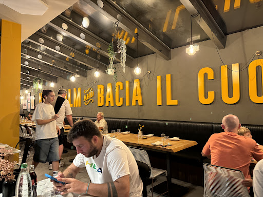 Nice place very hip. Many drink options. The pizza was very good. We tried the famous Burrata Bazzone. The spicy pizza was also very good. And the margarita. The desserts were presented well and beautiful. However, the service was pretty bad. Expect to wait to get served your drinks then rushed out. The food came quickly but you had to flag down a server. It's located off a side street of a main road and we were able to find parking. Recommend for big groups and families. Celebrations can be accommodated. They have an upstairs area, an outdoor area and an indoor area. There is a large row of booths. It gets busy around 930pm. When you pay you are given a table number and can pay the cashier. The restaurant was very hot do be prepared. This is a restaurant not a hotel. Google has it wrong. I will say it is very reasonably priced we had dinner and drinks for 3 and paid...