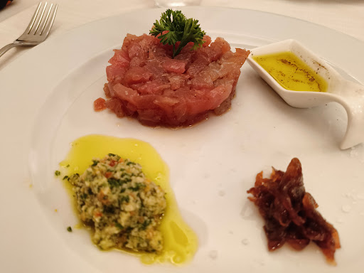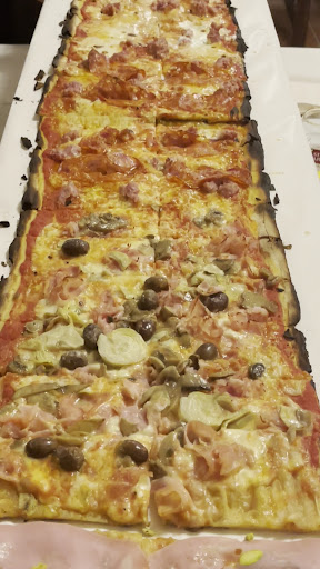 Read moreLocale ampio e pulito la pizza è buona. Hanno un sistema indubbiamente scenografico di servire la pizza ai tavoli che sicuramente ha portato giovamento al locale. Su dei supporti in filo di metallo alti ca. 35, 40 cm (quindi al altezza naso quando sei seduto) poggiano dei "taglieri" foderati di carta oleata lunghi quasi quanto il tavolo che può essere da due, da quattro, da sei, e forse anche da otto, su di essi la pizza, la cui pasta è sottilissima in cinque gusti a scelta, è già tagliata a larghe liste che prendi e poggi sul piatto. Ci dicevano che la pasta di questa pizza è diversa da quella classica tonda. Il servizio però e quello che è: non hanno "l'occhio". Siamo stati obbligati a prendere la pizza per l'incapacità del cameriere di capire che eravamo nuovi e proiettati anche verso altre pietanze. E così é andata per la pizza. Ti passano davanti su e giù per mezz'ora e più e non vedono né che sei arrivato né che hai finito non ti tolgono i piatti, non ti chiedono se vuoi altro... In effetti in tanti si mangiano la pizza e se ne vanno, forse prendono il caffè e il locale si svuota in fretta. Il prezzo? Beh, adeguato a...