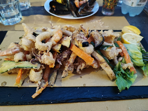Sono stata con la mia famiglia ieri sera a cenare in questo piccolo ristorante situato in una via laterale di piazza Aranci a Massa in zona pedonale, sedendoci sui tavolini esterni lungo la via. Le cameriere sono state molto gentili e disponibili nel servizio. I piatti sono squisiti e le porzioni molto abbondanti, erano talmente buoni che ci siamo dimenticati di fare le foto per la recensione ☺️ mi sono ricordata di farla solo al fritto. Abbiamo preso come antipasti i calamari ripieni e i gamberetti su un letto di cipolle di tropea caramellate e noci, ho ancora l'acquolina a parlarne! Di primi gli spaghetti agli scogli, le bambine li hanno divorati, e io mi sono goduta un buonissimo fritto di pesce bello croccante. Non avevamo più posto per il dolce. Complimenti davvero allo Chef e lo...