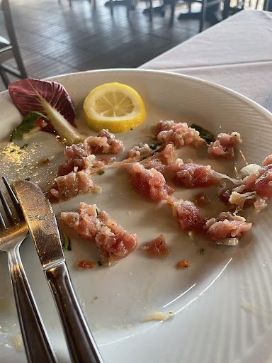 Purtroppo l’accoglienza iniziale è stata davvero deludente. La cameriera (di nome Mimma) si è mostrata subito molto scortese, sottolineando problemi su tutto: ci ha detto che non potevamo ordinare troppi piatti diversi, che la grigliata non poteva essere fatta per più di un certo numero di persone e che alcuni piatti di pesce avrebbero richiesto troppo tempo. Ha persino detto, in modo poco elegante, che la nostra comanda non avrebbe più permesso alla cucina di «andare a casa».