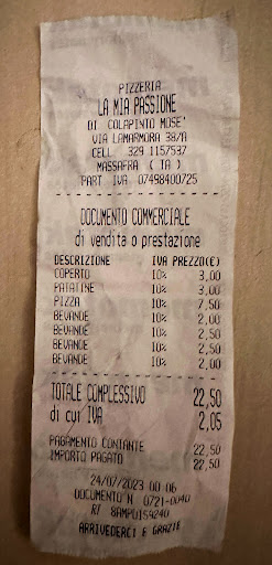 Read moreDue pizze e una porzione di patatine grande e una bottiglietta piccola di coca Cola zero a domicilio, 17,50 euro senza scontrino, il prezzo è decisamente eccessivo, le pizze discrete, le patatine un po' troppo cotte e di bassa qualità, la bottiglietta della coca cola era stata chiesta da litro, ma è arrivata da 33cl. Non credo che li contatterò ancora.