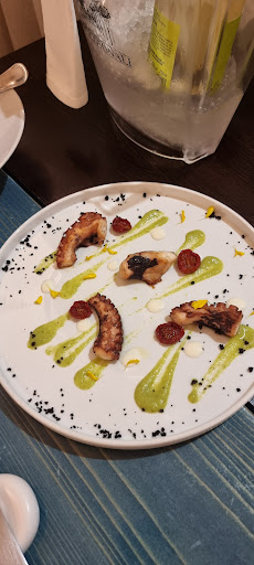 Location Situata in pieno centro di Massafra, dopo qualche difficoltà nel trovare parcheggio e quando ormai le speranze erano finite... (il problema parcheggio riguarda tutto il territorio centro storico di Massafra, penalizza spesso le attività locali e scoraggia noi visitatori) riusciamo ad entrare nel ristorante. Il locale si presenta fresco climatizzato, pulito e molto accogliente. Il maìtre ci accompagna al tavolo dandoci il benvenuto, notiamo subito la mise en place molto curata, bellissimi i tavoli di color turchese che richiamano il colore del mare. Scegliamo Antipasti rigorosamente di mare, crudo freschissimo accompagnato con un vino bianco "Fiano Albiore della cantina Cento Vignali" dal particolare bouquet di mela e banana. Ci elencano dei primi, uno più invitante dell'altro ma il mio pensiero (linguine con i ricci di mare) cade subito nella tentazione di chiedere se c'è la possibilità di sostituire le linguine con i paccheri e senza alcun minimo problema il mio desiderio viene esaudito :-) Si continua a bere vino stessa tipologia, ci avviciniamo al banco del pesce fresco... grandi pezzature bellissimi, freschissimi e scegliamo un'orata da fare al forno. Nell'attesa chiediamo dei crostini con un po' di olio, ma il maìtre non ci porta un olio qualunque, ci fa una presentazione di oli Biologici Monovarietali dell'azienda Quattro Colline, pazzesco è il profumo ed il sapore di questo elisir di olive dai sentori erbacei. Ortaggi come il pomodoro leggermente amaro come la cicoria selvatica e piccante.... un'esplosione di profumi e sapori. L'orata servita e poi sfilettata da Marco è la conferma di quanto visto prima, freschissima..... si sentono i profumi ed i sapori del mare io la preferisco al naturale. Sorbetto e succo di melograno per finire. Il conto.... risulta in linea con la freschezza e la qualità dei prodotti offerti non è un Fast Food. Consigliatissimo per la qualità e l'alta capacità di selezionare...