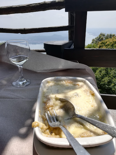 Read moreUn posto bellissimo dove mangiare di fronte a un paesaggio incantevole. Lo abbiamo raggiunto passando da Arona, vedendo la statua di S. Carlùn (come si dice dalla mie parti) , attraversando Meina e quindi arrampicandoci fino ai quasi 800m di altitudine. Gli ultimi km sono davvero godibili in mezzo a boschi e viste mozzafiato sul lago. La salita è abbastanza ripida. Una volta arrivati ci si immerge in un borgo antico che comprende anche una chiesetta molto carina. Il ristorante/trattoria è piccolo e la parte più interessante è quella che sulla terrazza da direttamente sul lago, sui laghi (Maggiore, Monate, Varese). Quando siamo stati noio il tempo non era splendido, leggera foschia ma sufficiente a farne apprezzare i luoghi. Una chicca dei ristoratori, ci hanno riservato un tavolino da 2 persone ma situate entrambe lato monte, così da apprezzare il panorama. Una piacevole sensazione. Il menù era preimpostato su alcuni piatti tipici, ci siamo fatti un antipastino di salumi e sottaceti, una lasagnetta alleverdure, una polenta concia (con formaggi locali e visibile in foto qui sotto) e un dolce, tutto accompagnato da un bianco frizzantino fresco e caffè finale. Il prezzo? in 2 abbiamo speso 44 €. Per chi arrivando da Milano volesse evitare di attraversare e fare tappa ad Arona (che erò se non ne avete mai visto i suoi vicoletti ne vale la pena), potete restare sull'alto Vergante, rimanere in autostrada e fare la statale che passa oltre Meina. Vi perdete anche una bella parte di tragitto immerso nel verde. Come tempo di percorrenza veloce, si parla di circa 1h. Che dire? molto bello, ci torneremo e sicuramente il consiglio è di prenotare prima, in modo da avere a disposizione i posti migliori, quelli sulla terrazzina al...