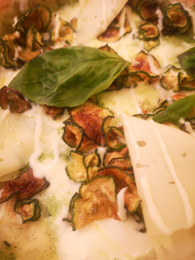 I had the pumpkin, burratta, basil, bacon, olive oil pizza and it was heavenly! The crust, which is my least fave part of pizza was insanely light and delicate, it held the ingredients and then melted away. Honestly, the perfect combination of creative ingredients. My husband had Black Mamba (truffle - it was great, but I could not get over my pizzaâs awesomeness. Great price. Service was attentive and friendly, outdoor seating on a quiet street under large patio umbrellas....